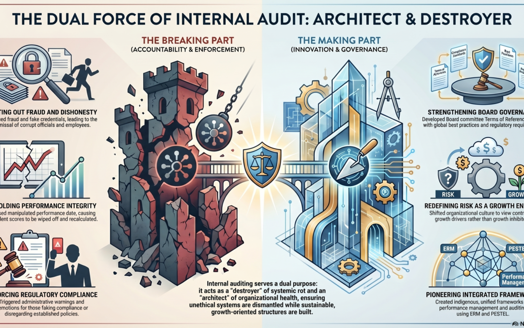 I was just being my usual audit zealot for the clients I served and so the internal auditing always meant so much more, not just to me (has always been everything to me) but to my clients as well. All I have ever given is my best to the client entities I served and my damn to those who always wanted to shut me out. I have been the architect, and I’ve been the destroyer as well.