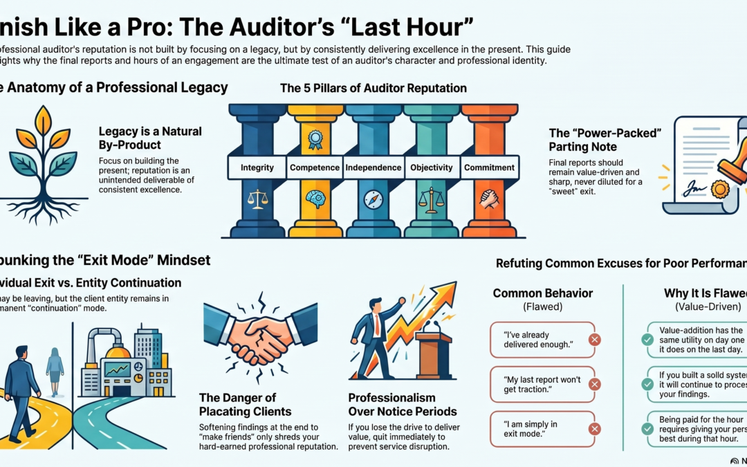 The last hour is meant to be just another hour before transition happens both for the auditor and for the entity it serves. And thus, our conduct shouldn’t be any different to what it has always been, characteristically auditor like!