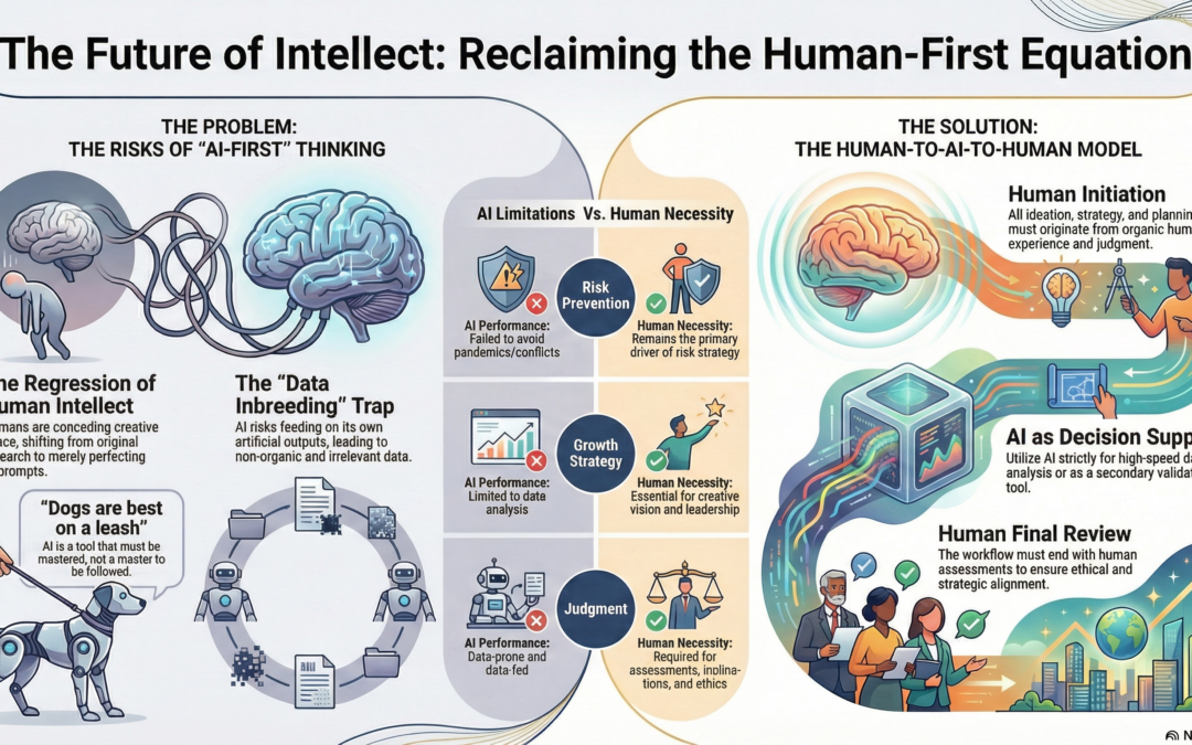 So, there’s only one equation to any workflow be it ideation, strategy, blueprint, approach, process, operation, activity, transaction, system, whatever! And that is Human to AI to Human. Because it begins with us and it ends with us. And its for us to decide when and in what form and if we’re to use AI. And that’s us putting AI in its place. The future of intellect is ours and is for us to decide!